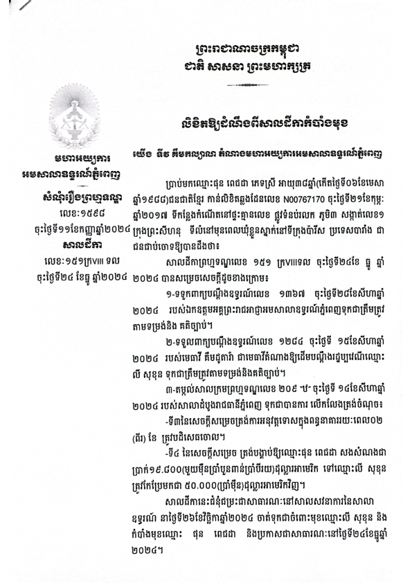 ដីកាសម្រេចអំពីបណ្ដឹងដិតចិត្ត(រឿងព្រហ្មទណ្ឌ)