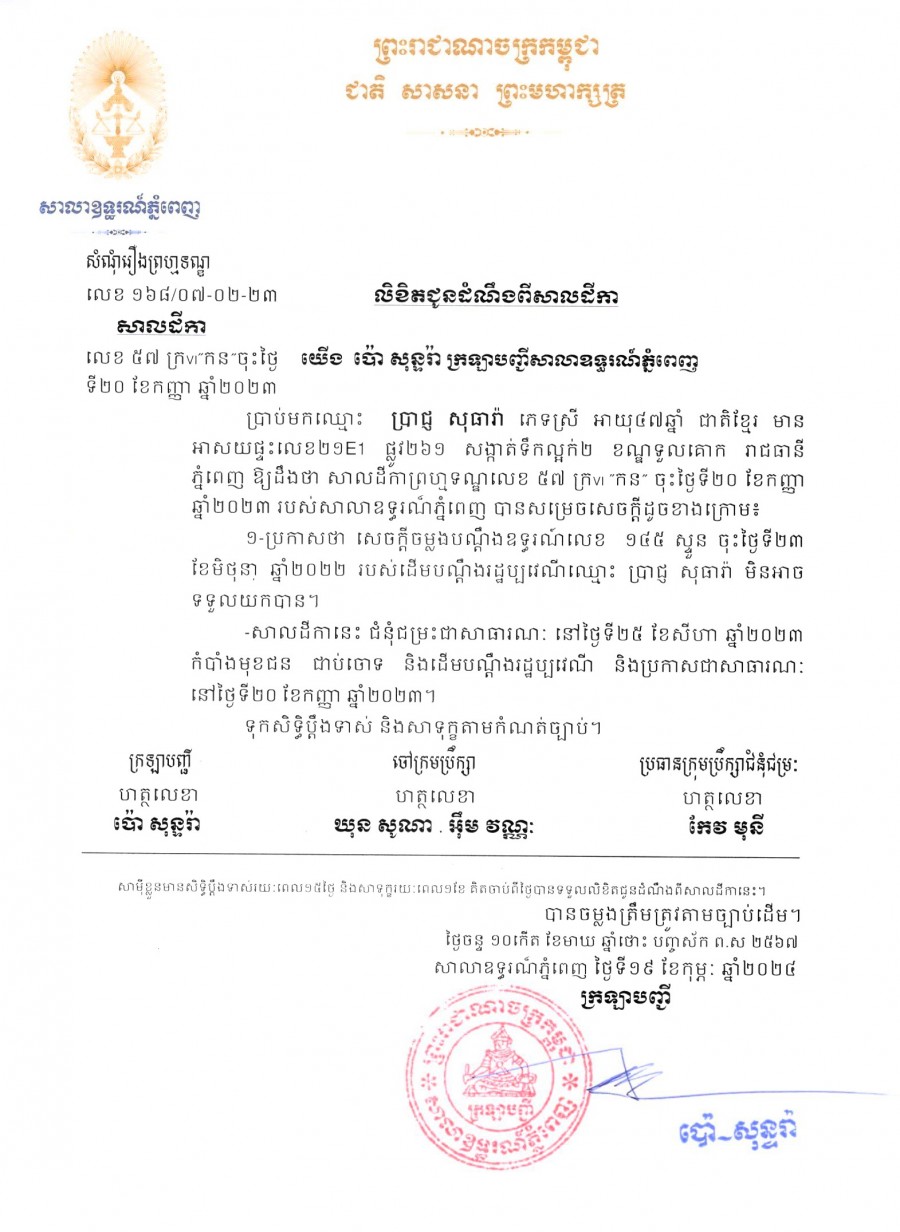 លិខិតជូនដំណឹងអំពីការលើកពេលសវនាការ