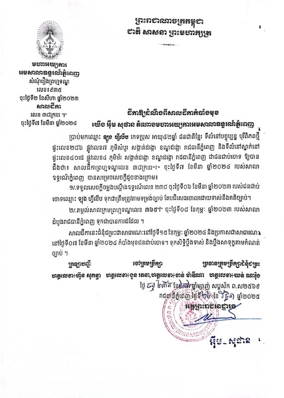ដីកាសម្រេចអំពីបណ្ដឹងដិតចិត្ត(រឿងព្រហ្មទណ្ឌ)