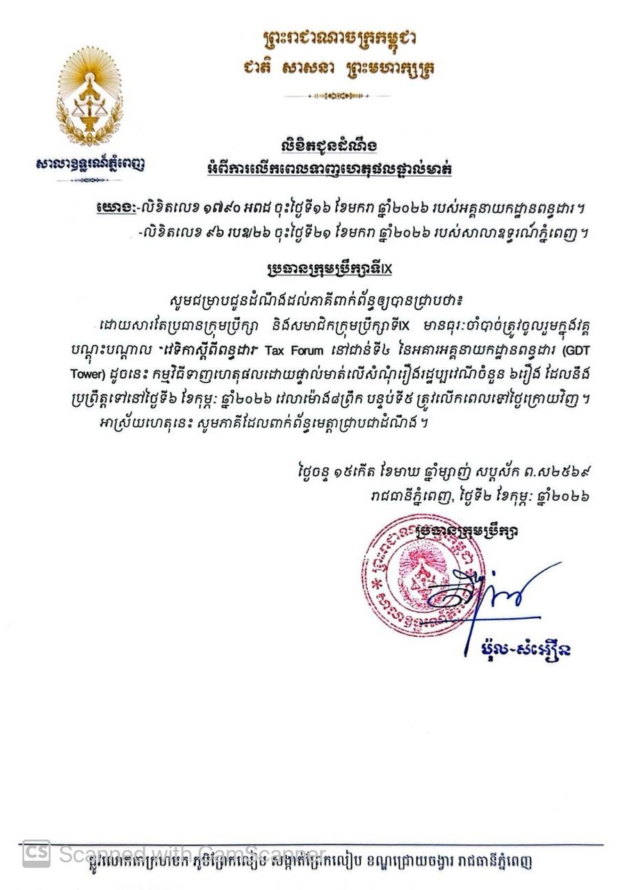 លិខិតជូនដំណឹងស្តីពីការលើកពេលប្រកាសសាលដីកា