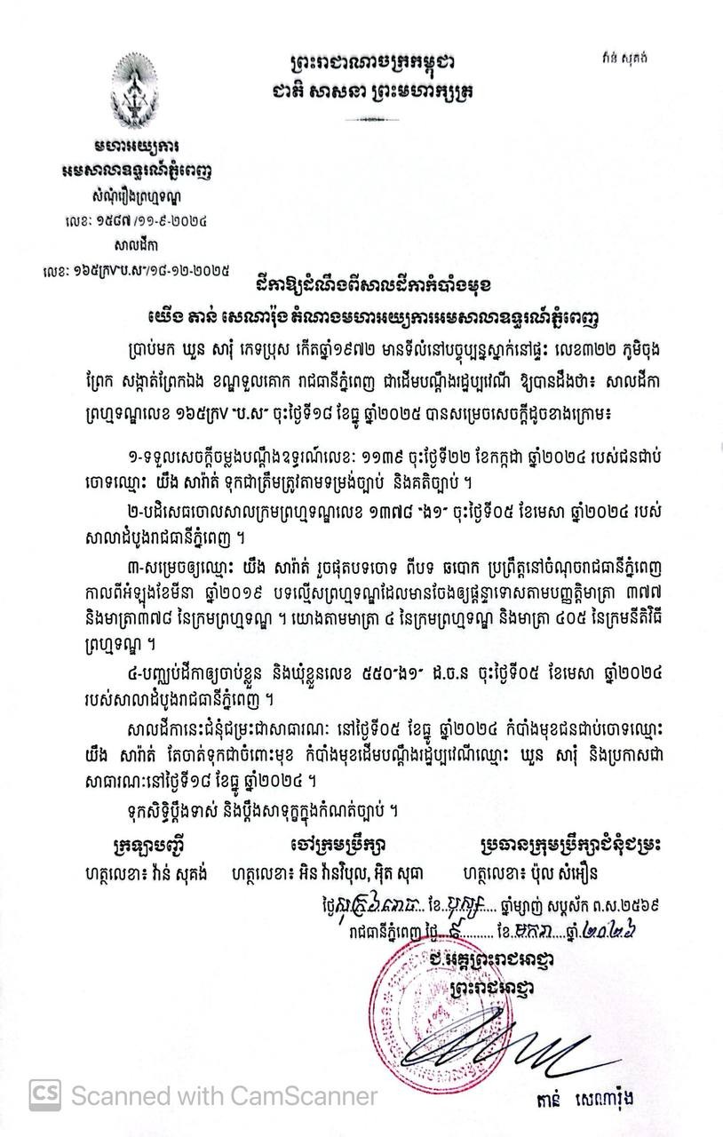 ដីកាសម្រេចអំពីបណ្ដឹងដិតចិត្ត(រឿងព្រហ្មទណ្ឌ)